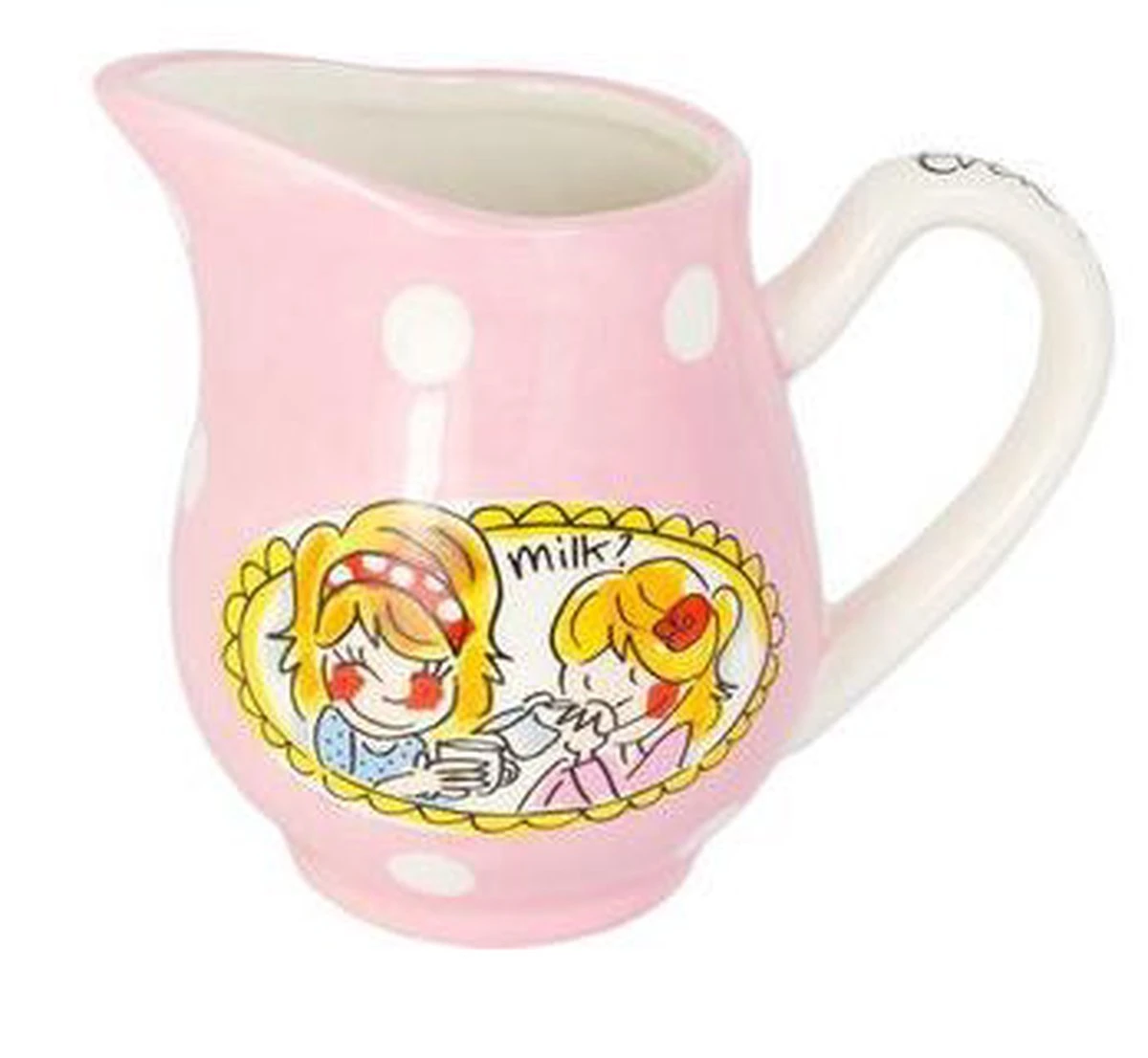 Dit vrolijke en kleurrijke melkkannetje maakt jouw tafel nog gezelliger! De opvallende en kleurrijke illustraties kenmerken de “Even bijkletsen’ lijn van de twee vriendinnen uit Amsterdam: een servieslijn met een knipoog. Het “Even bijkletsen’ servies, waar Femque en Janneke bekend mee zijn geworden, bestaat o.a. uit met o.a. kop en schotels, borden, petitfours en theepotten. Om de lijn compleet te maken is er nu ook een melkkan.