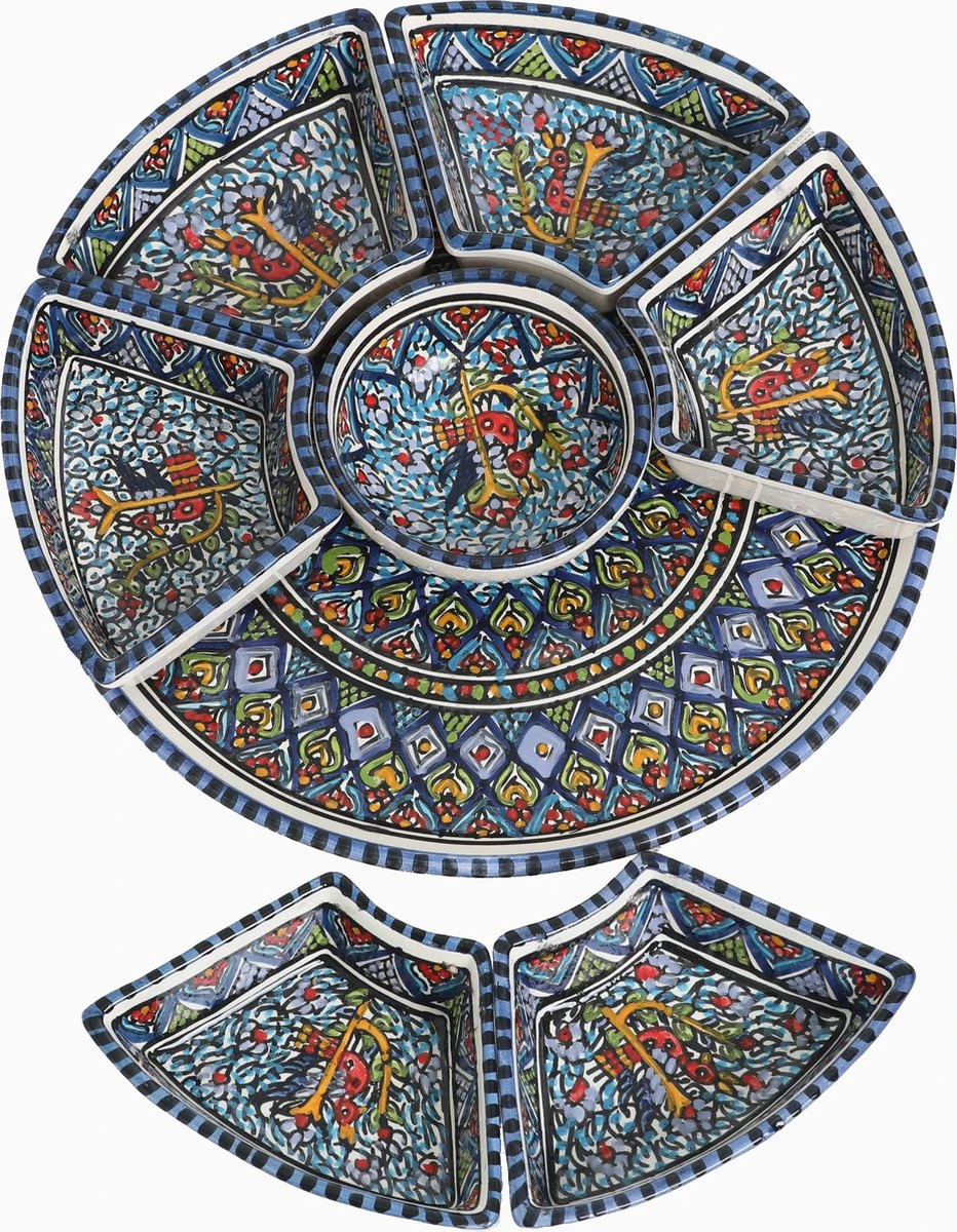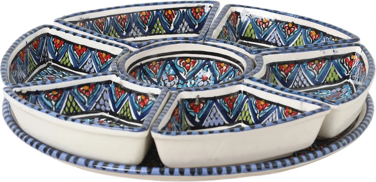 De serveerschaal van CRAFLAIR is traditioneel met de hand gemaakt ambachtslieden. Het patroon is uniek getekend en met de hand beschilderd op de tapas schaaltjes.