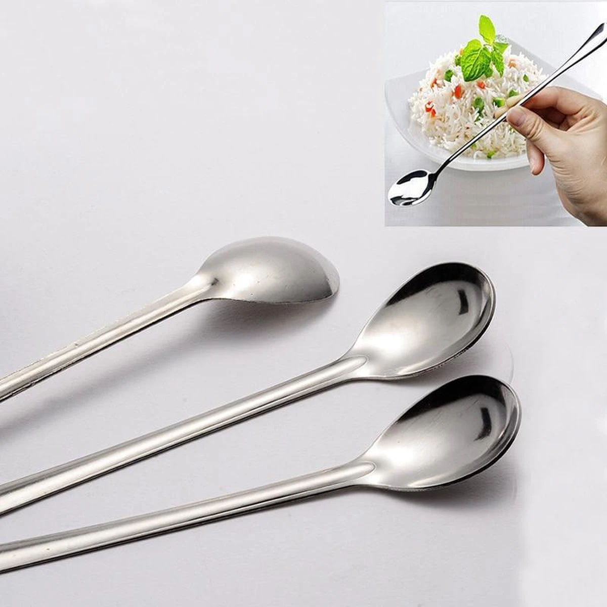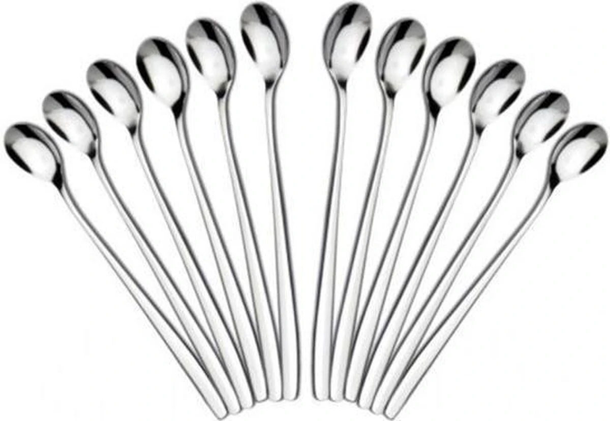 Premium stalen lepels voor onder andere yoghurt, latte Macchiato ,dessert of koffie. Ideaal om in lange glazen te roeren of uit te scheppen.