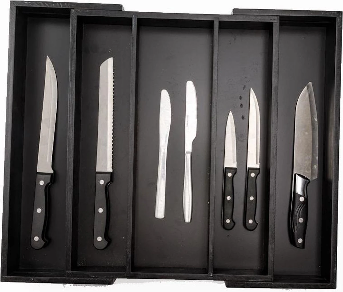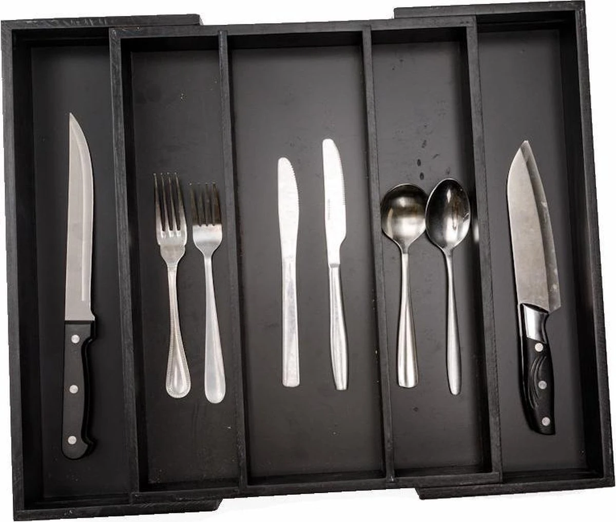 Super handige uitschuifbare bestekbak van bamboe met 3 tot 5 vakken. Ideaal om je keukenlade te organiseren!