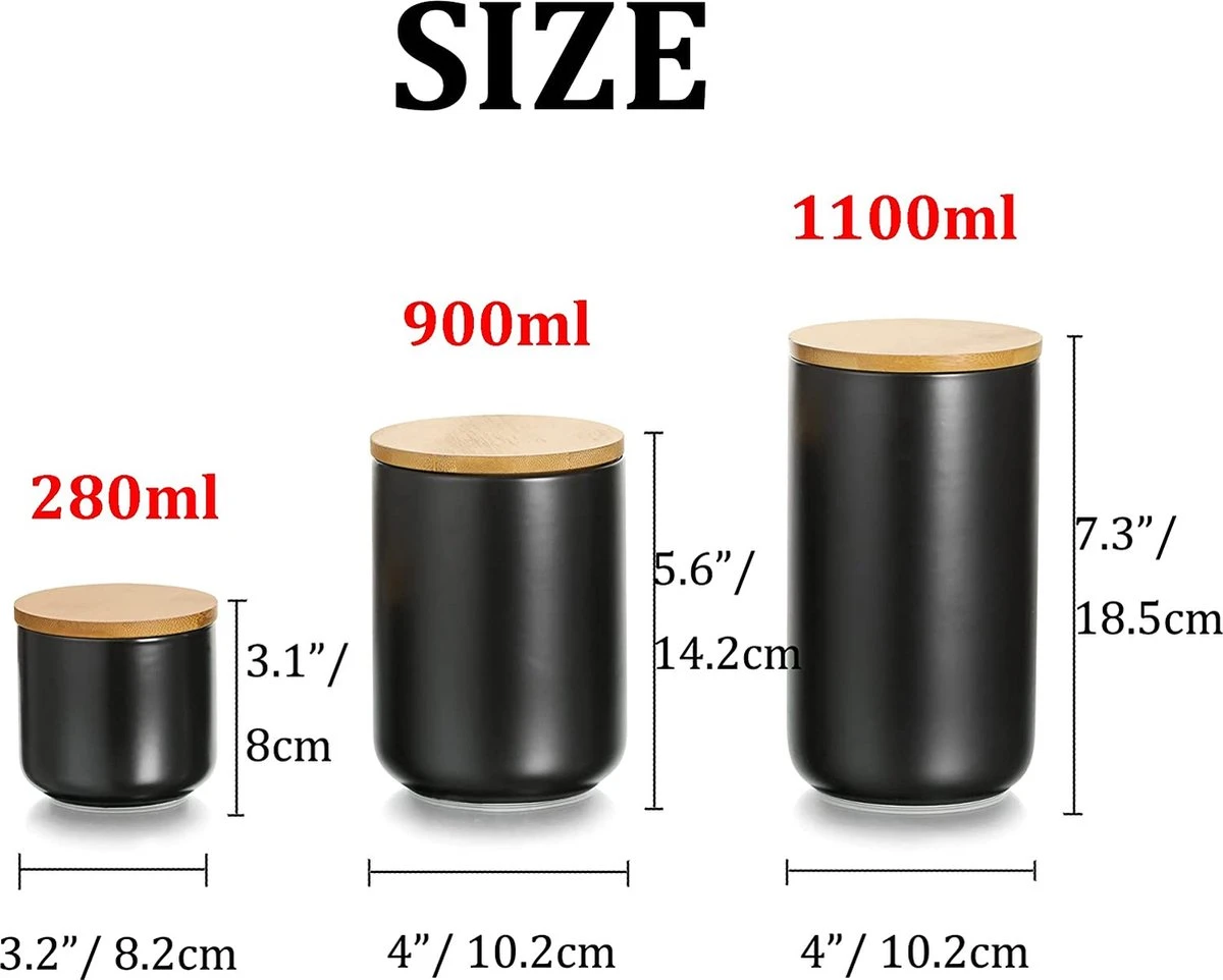 Voorraadpotten Keramiek – Suikerpot 3 stuks – Deksel Bamboe – Luchtdict Voorraadbussen Potten – Wit